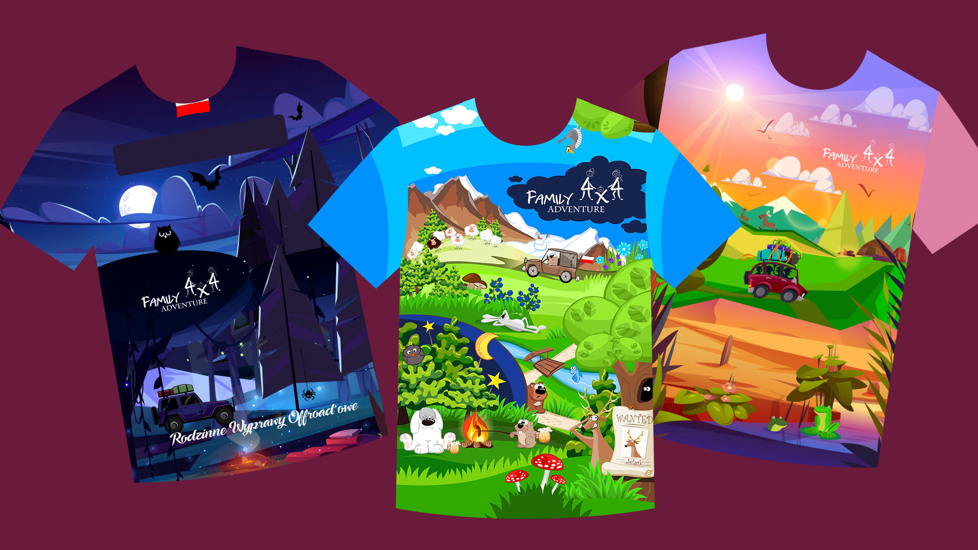 Przykład: Projekt grafiki głównej + adaptacja na koszulkę, przygotowanie plików do druku.